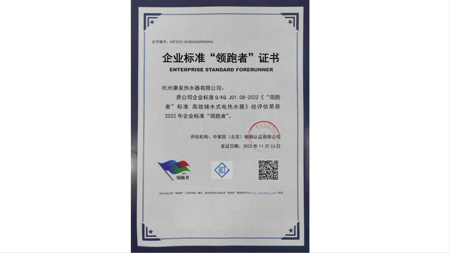 康泉品牌2022年再度斩获“企业标准领跑者”殊荣